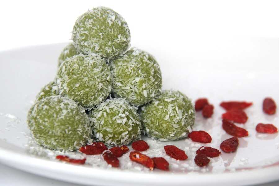 Diófélékből és aszalt gyümölcsökből nagyon sokféle nyers desszertet lehet készíteni. Egy aszalt gyümölcsös diógolyó receptet, és egy kókuszos hófehér mandula golyó receptet már mutattunk, és most ez a zöld mandula golyó is egy igazi különlegesség. Nem csak a színe miatt. Aki szereti a matcha teát, az biztosan ki fogja próbálni! (Nagylányom <3)