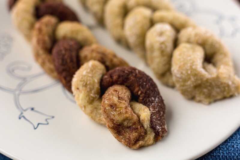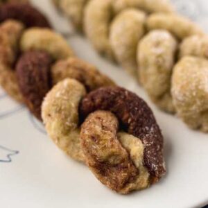 Ezeket a csíkokat is színezhetjük például kakaóporral, így készül a kakaós fonott kalács.