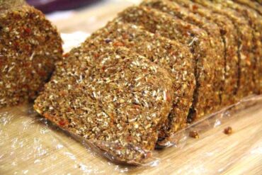 Aszalt nyers kenyér: ez egy vékony, hajlékony valami, inkább sós palacsintának hívnám, mint kenyérnek. Változatosan lehet elkészíteni, sárga, barna lenmagból, vagy szezámmaggal meg lehet szórni. …