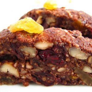 Az aktivált diót apróra daráljuk, és hozzákeverjük a datolyapépet, a kakaóport, és a sót.