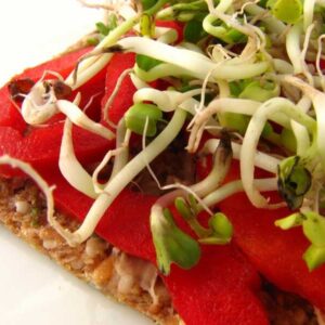 Hozzákeverjük a többi hozzávalót, ha túl száraz lenne, egy kevés vizet is önthetünk bele. Összegyúrjuk, mint egy tésztát, aszalógép tapadásmentes tálcáján kiterítjük. (a megadott mennyiség 1 tálcára elég) és pihentetjük legalább 8-10 órán keresztül.