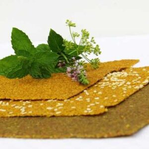 Egy nagyon vékony, lenmagos nyers kenyér, sós palacsinta