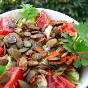 Ez a recept csak egy példa. Bármilyen salátára rászórhatjuk a mediterrán tökmagot!